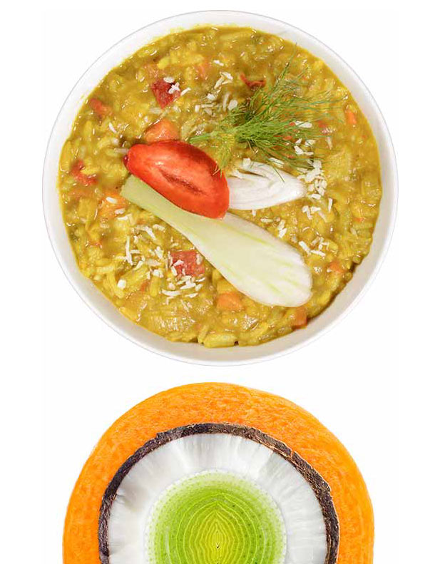 Wasser, Kokosmilch* (Kokosnussextrakt*, Wasser - 20%), Gemüse* (Karotten*, Lauch*, Paprika* - 18%)), Basmatireis* (11%), Kartoffeln*, Agavendicksaft*, Rapsöl*, Meersalz, Knoblauch*, Currymischung* (SENFSAAT*, Kurkuma*, Koriander*, Bockshornkleesaat*, Zwiebel*, Chili*, Meersalz, Rohrohrzucker*, Knoblauch*, Ingwer*, Kümmel*, Cumin* - 0,02%)